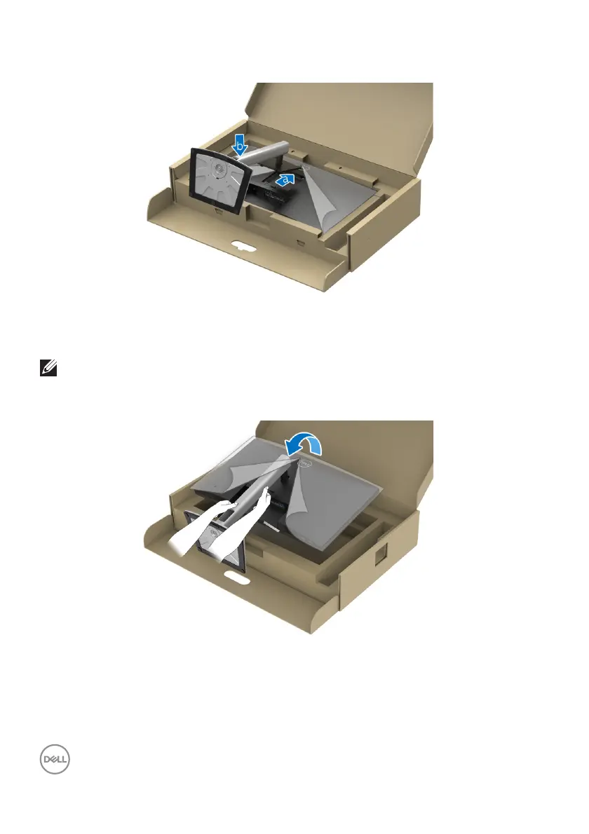 8. Hold the stand riser with both hands firmly and lift the monitor. Then place