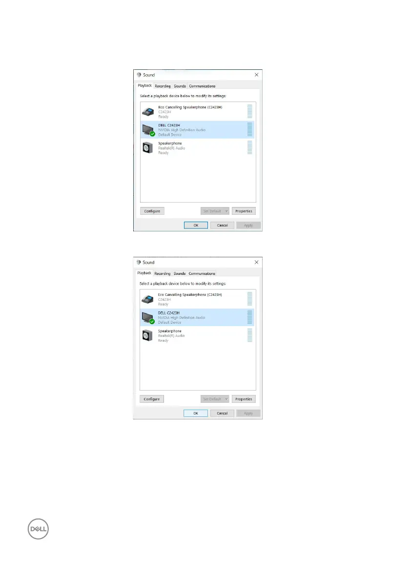 Click DELL C2423H/C2723H, and then click Set Default, the monitor speaker will