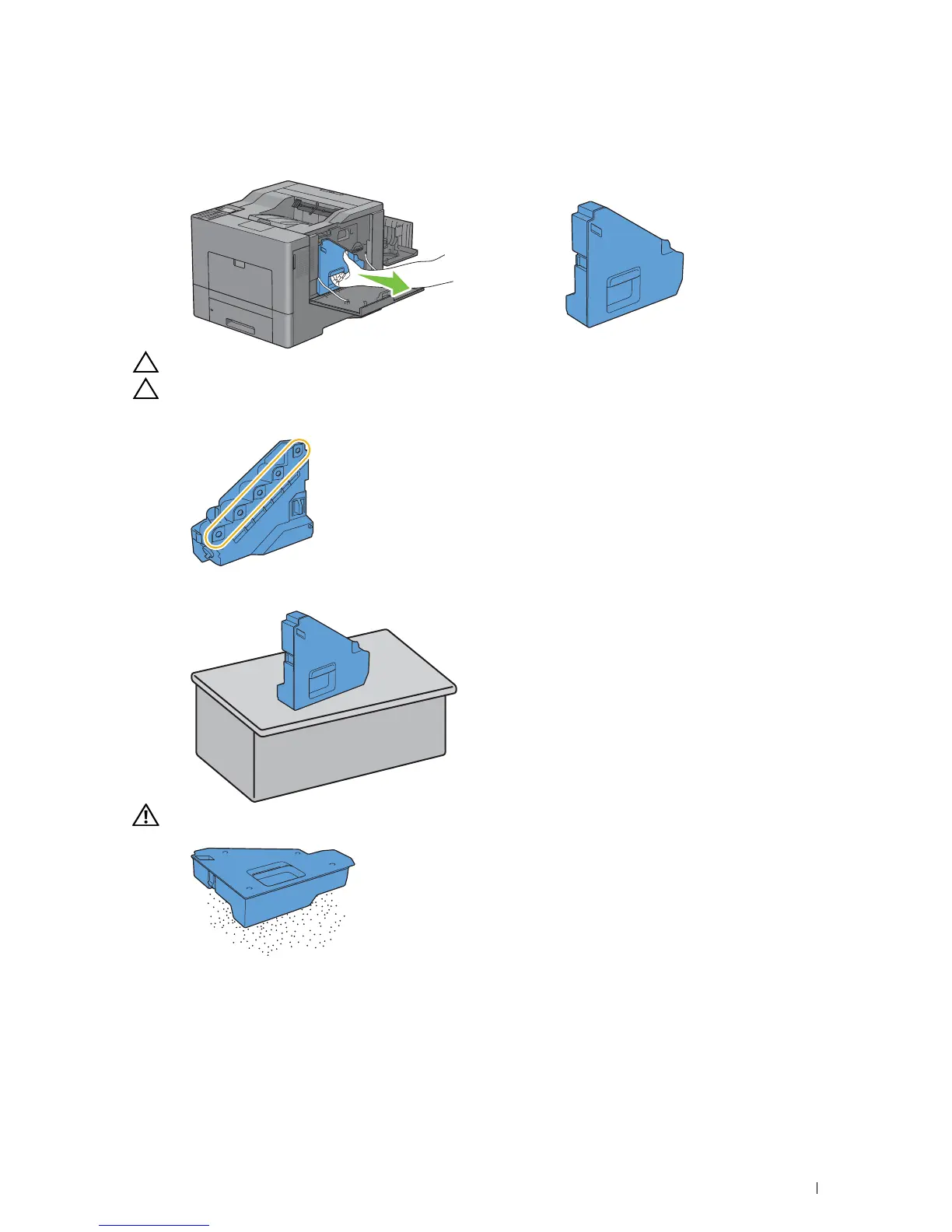 CAUTION: Take care not to drop the waste toner box while you are removing it.
