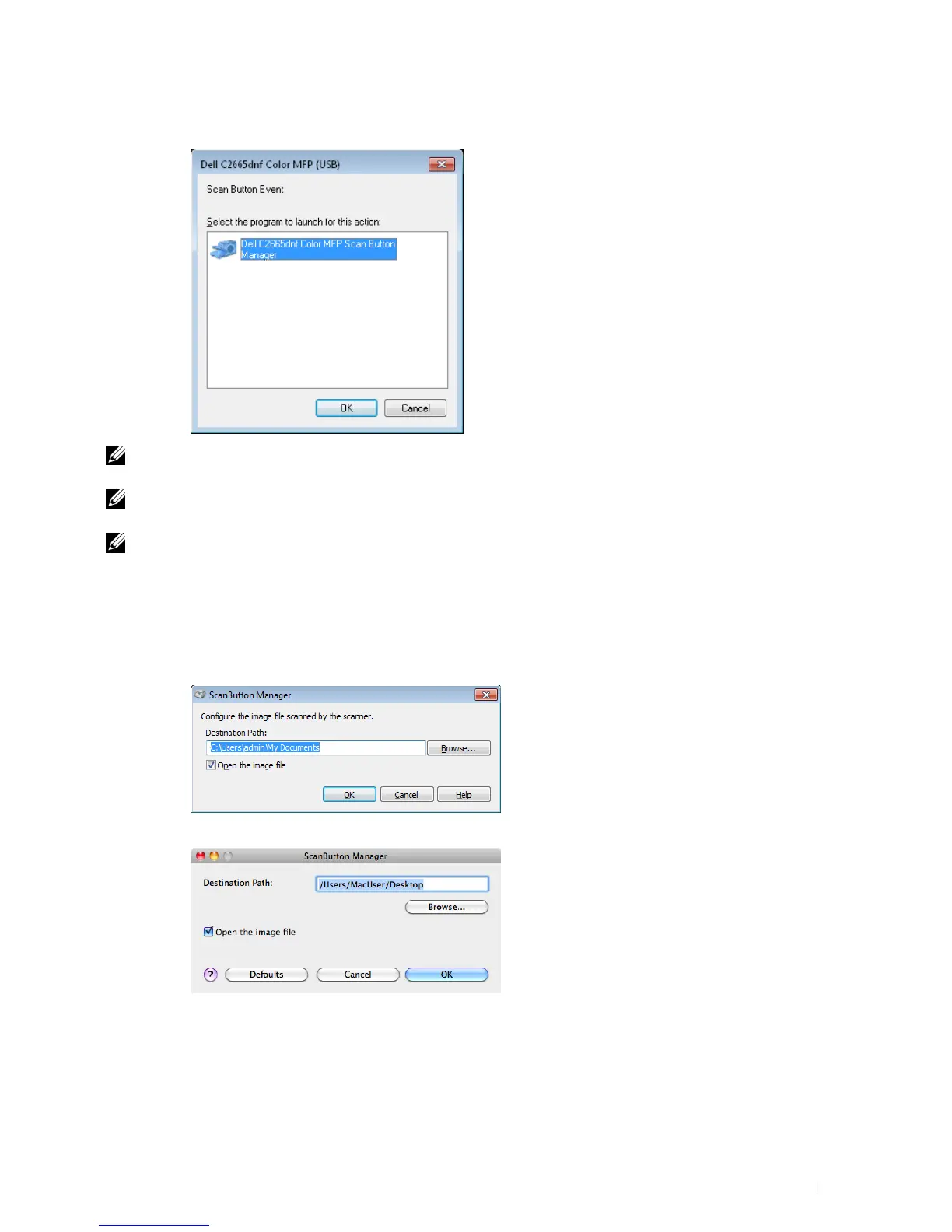 box selected, Dell C2665dnf Color MFP ScanButton Manager will automatically open without selecting an application.