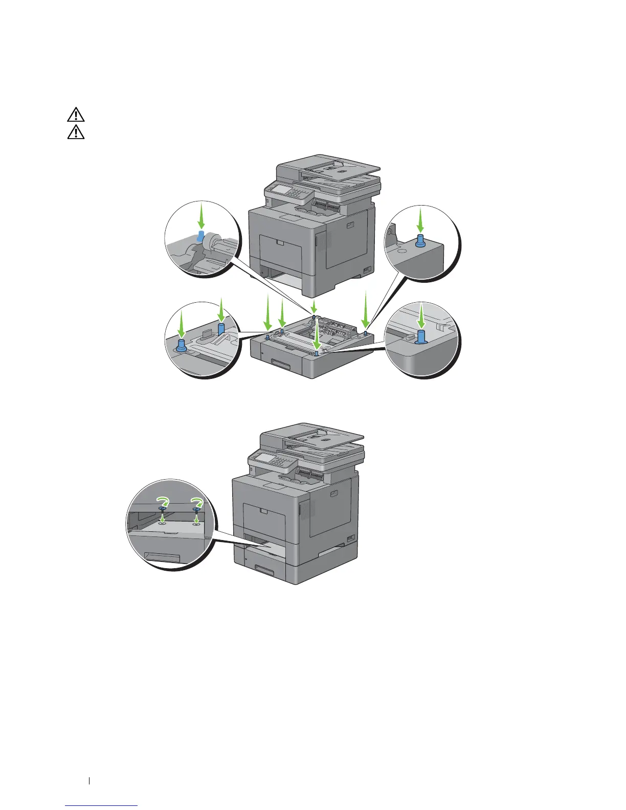 printer. Gently lower the printer onto the optional 550-sheet feeder.