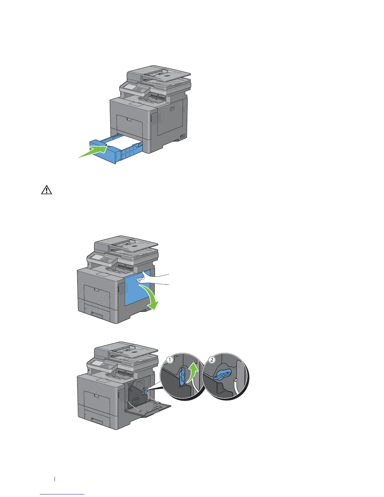 Load paper in tray1, and then insert the tray into the printer and push until it stops.