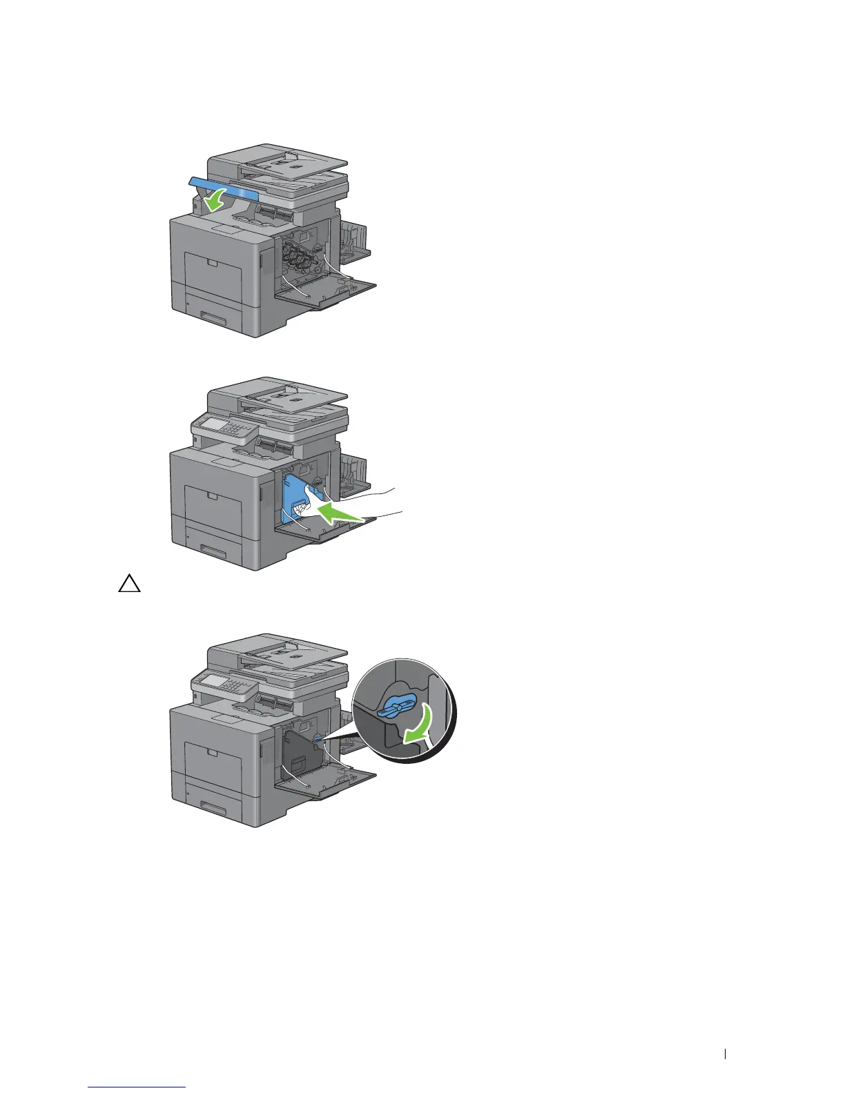 CAUTION: If the waste toner box does not fit into place properly, make sure that the transfer belt unit is fully inserted.