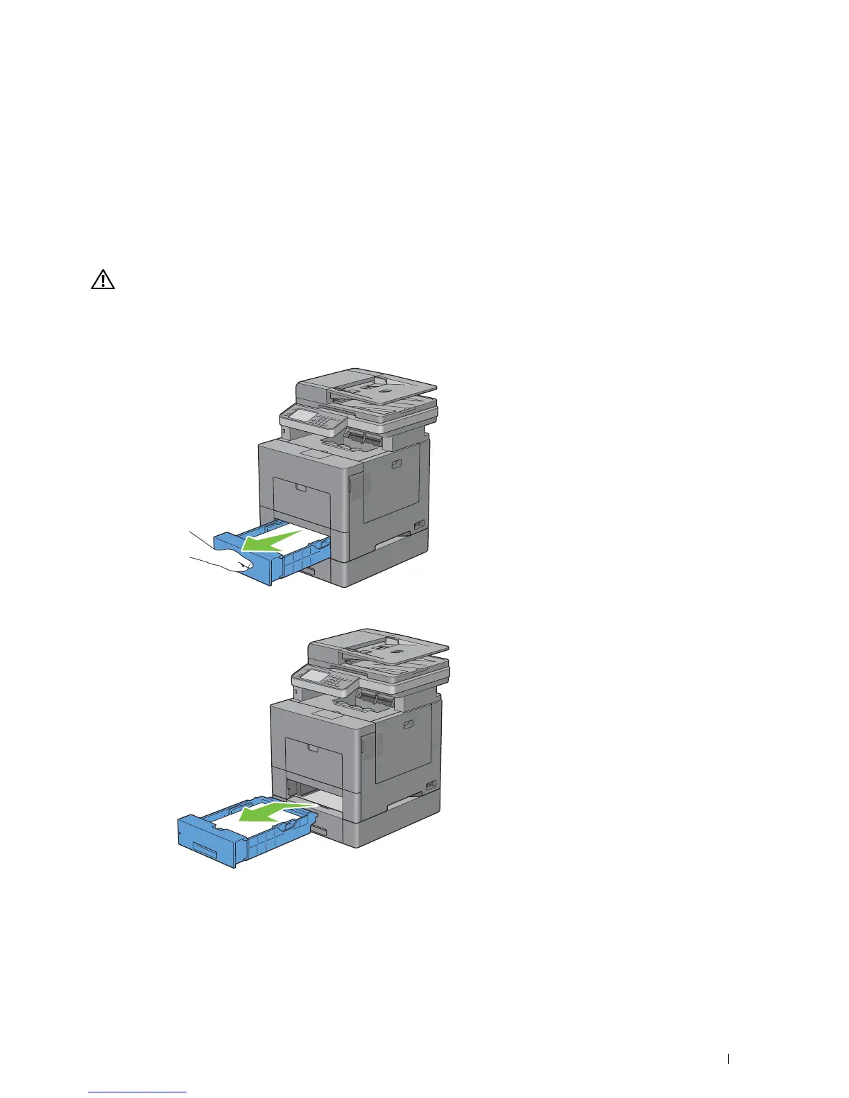 WARNING: When you remove the optional 550-sheet feeder (Tray2), be sure to turn off the printer, unplug the power cable, and