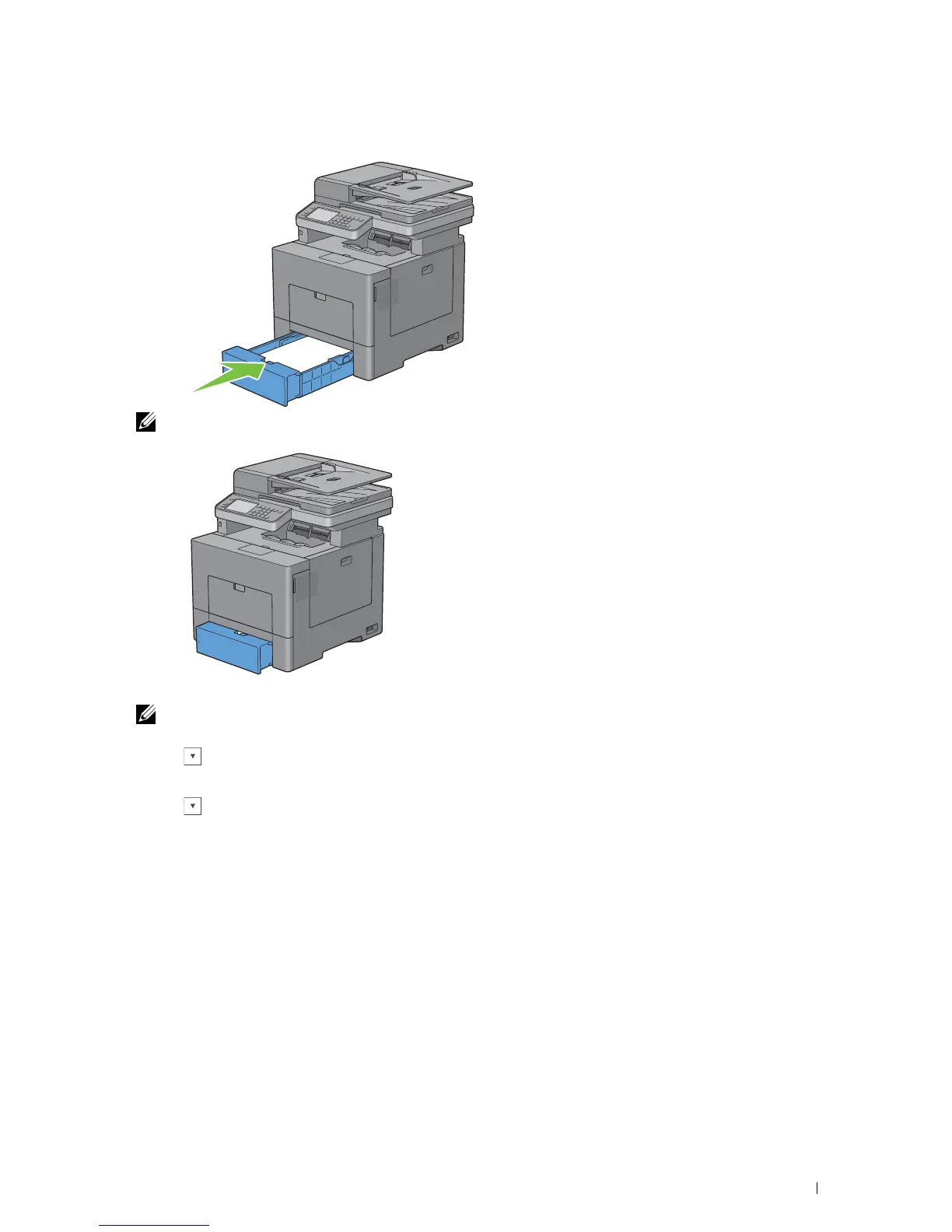NOTE: If the front side of the tray is extended, the tray protrudes when it is inserted into the printer.