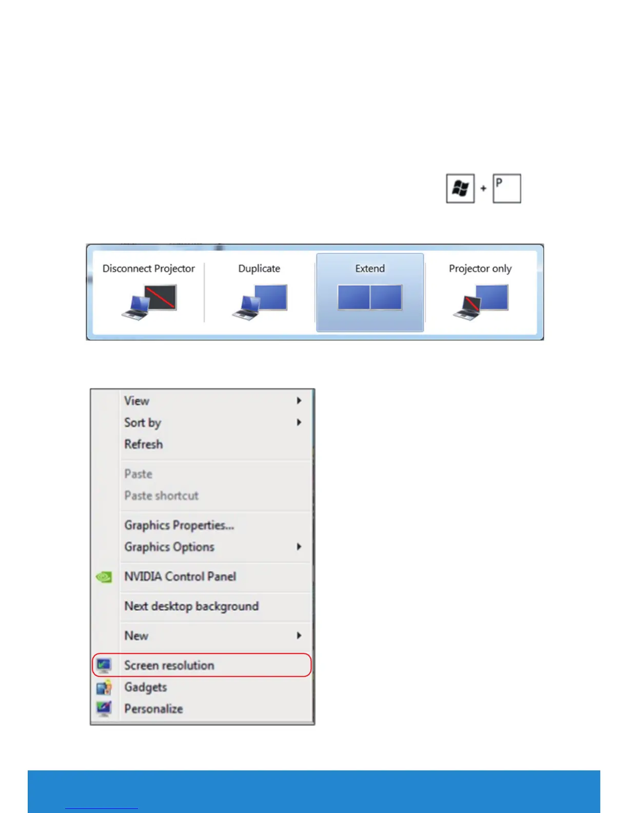 2. While holding down the Windows logo key, press P to toggle between