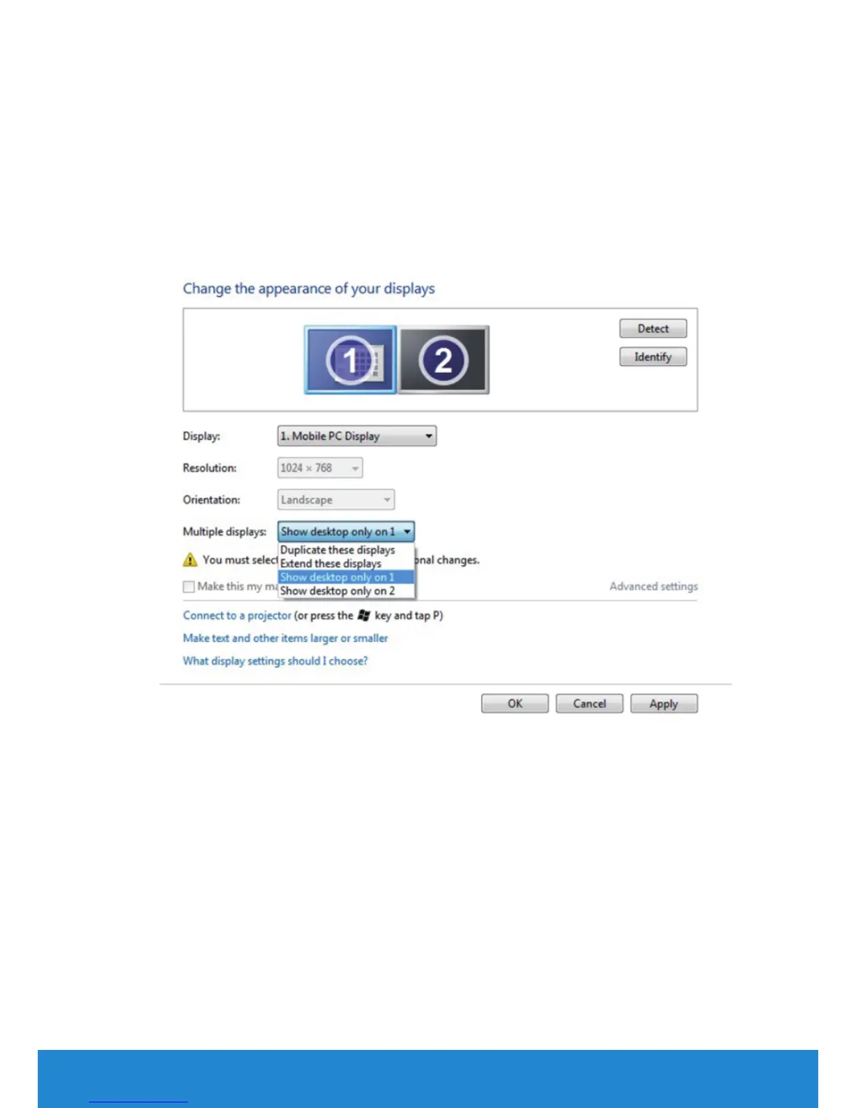 • Show desktop only on: Display the status of a particular monitor.