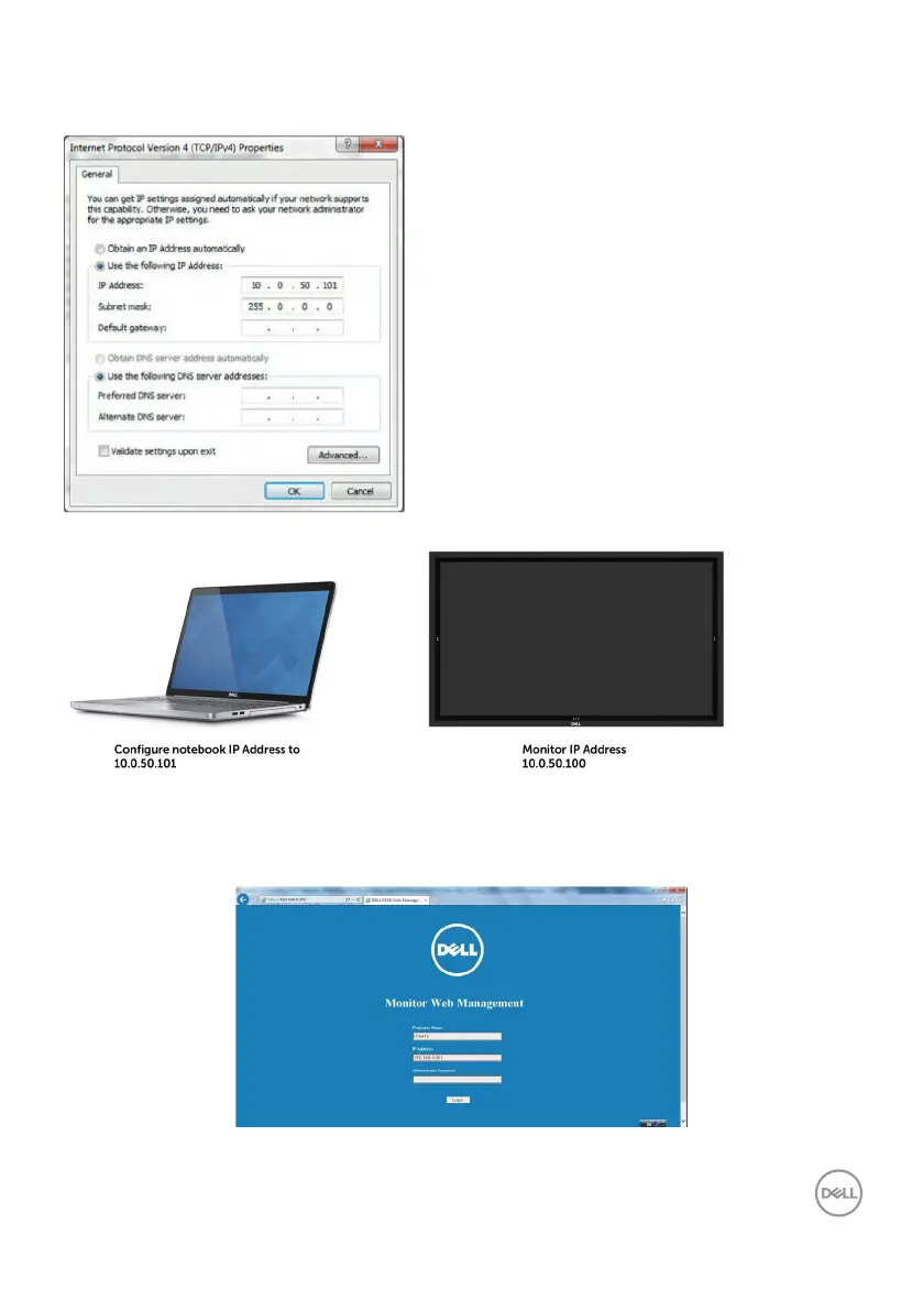 1. Open a web browser and type the display’s IP Address (10.0.50.100) in the address bar.