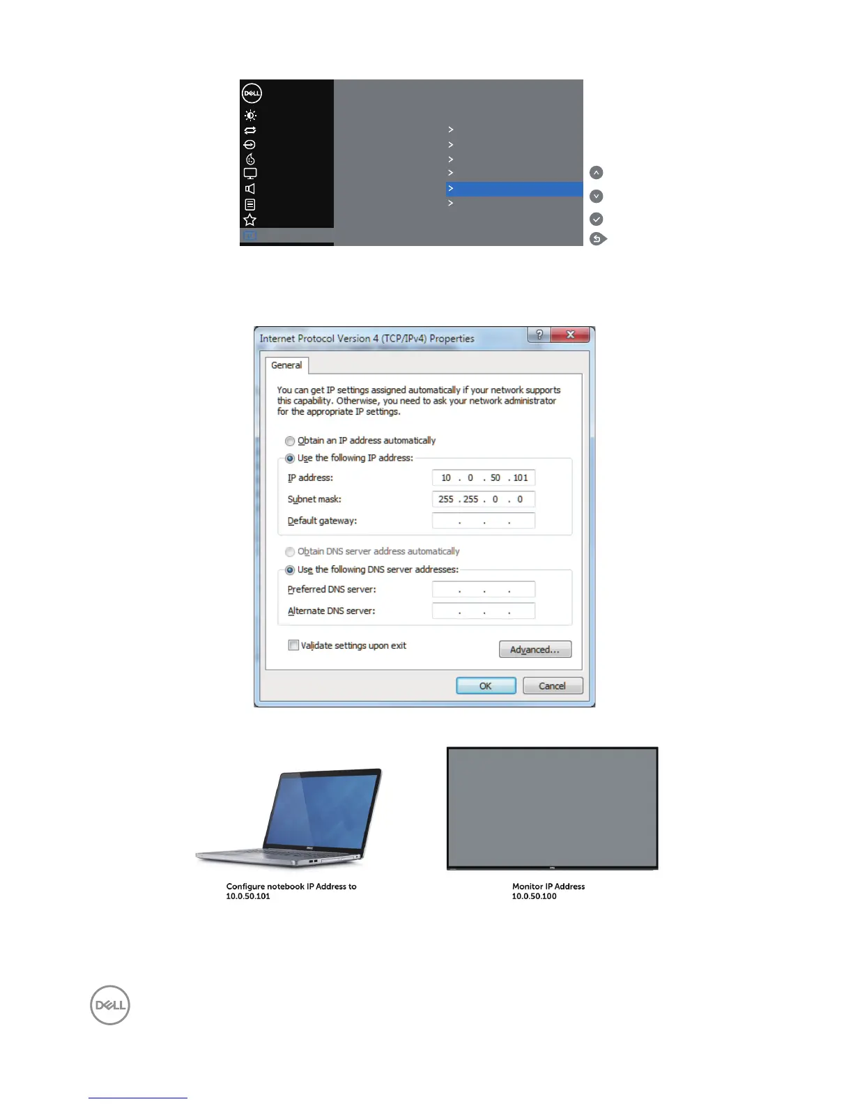 In the computer’s IP Properties tab, specify an IP Address by selecting Use the