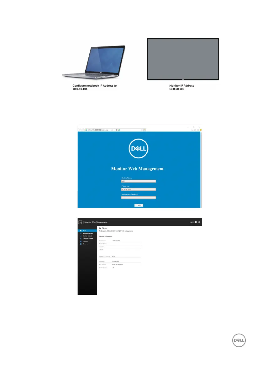 1. Open a web browser and type the monitor’s IP Address (10.0.50.100) in the
