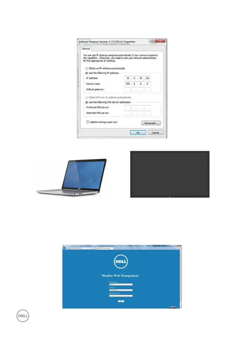 1. Open a web browser and type the display’s IP Address (10.0.50.100) in the