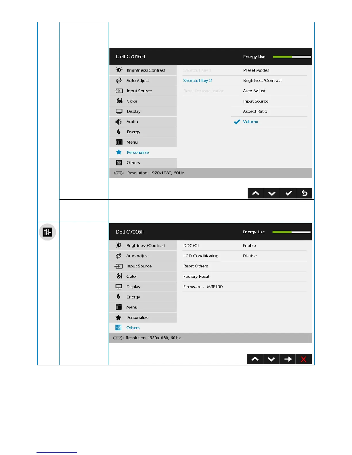"Auto Adjust", "Input Source" , "Aspect Ratio" , “Volume” and set as