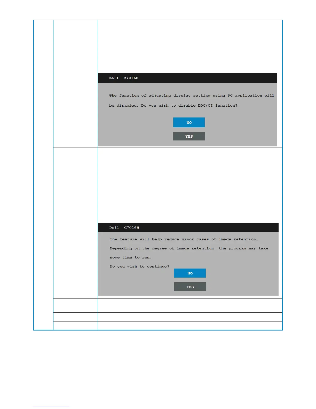 Disable: Disables the DDC/CI option and the following message