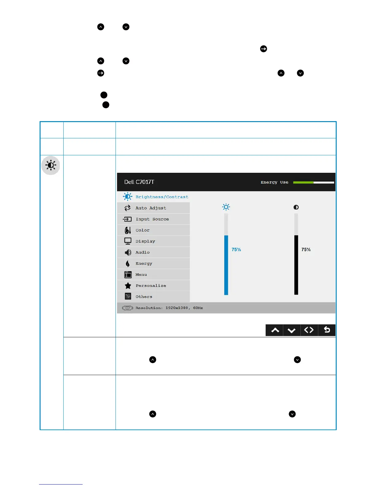 key to increase brightness and press the key to