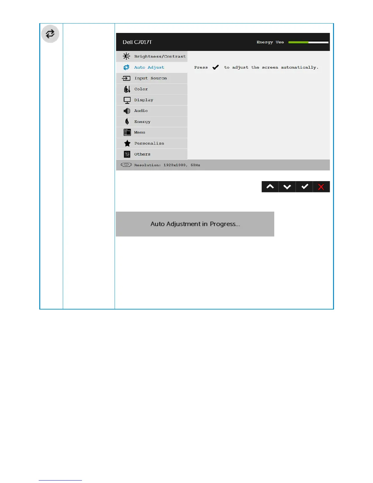 Auto Adjustment allows the monitor to self-adjust to the