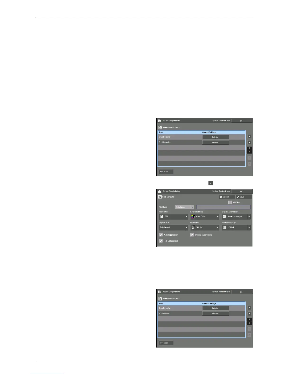 Note • [Scan Defaults] is in the second page of the administration menu. Select [ ] button to display.