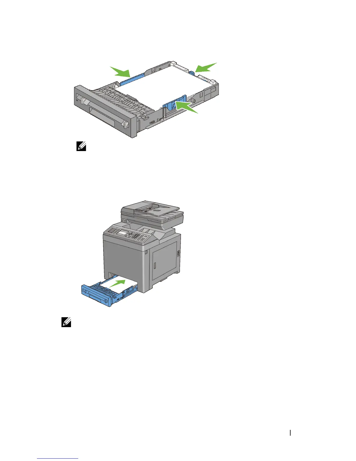 After confirming that the guides are securely adjusted, insert the tray into the