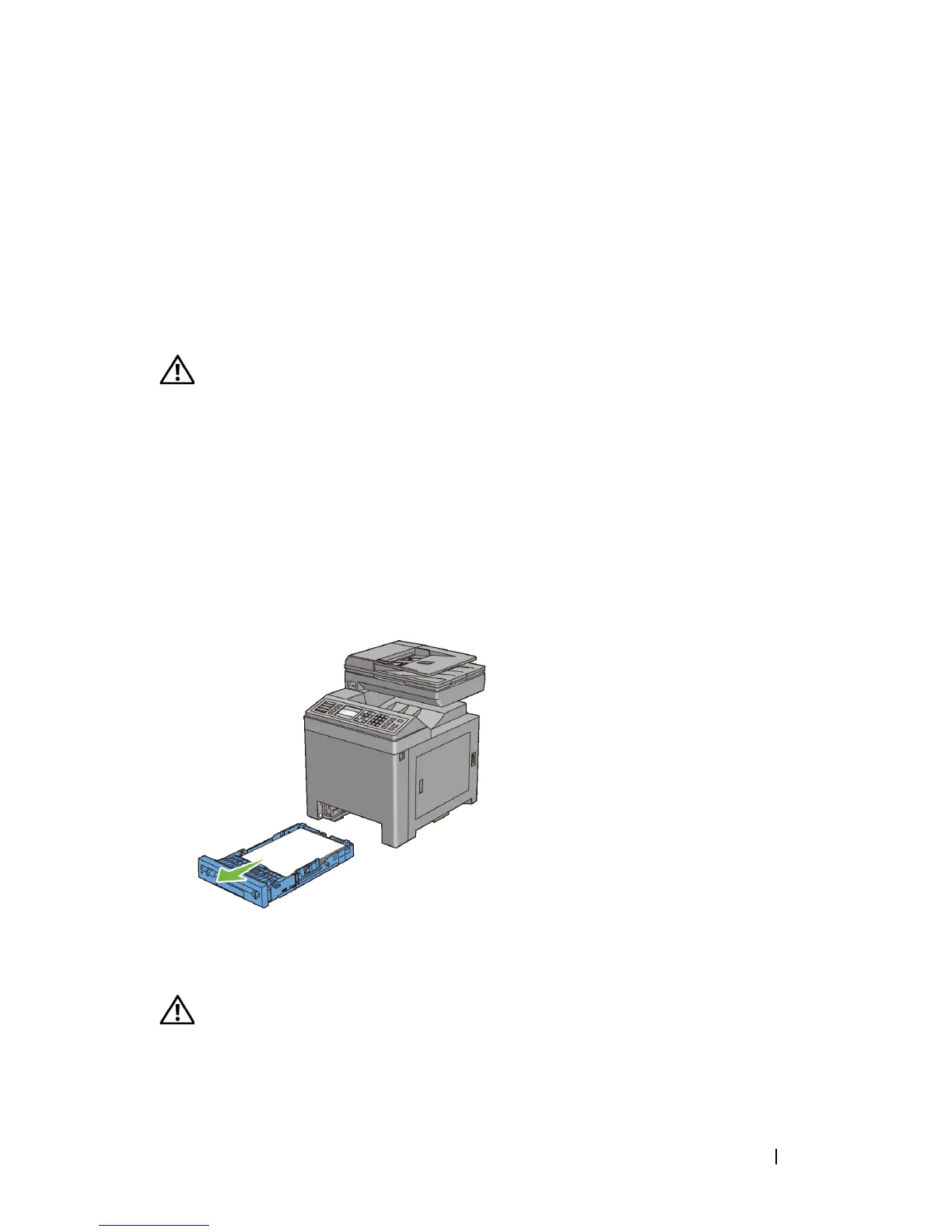 Pull the standard 250-sheet tray out of the printer about 200 mm. Hold the