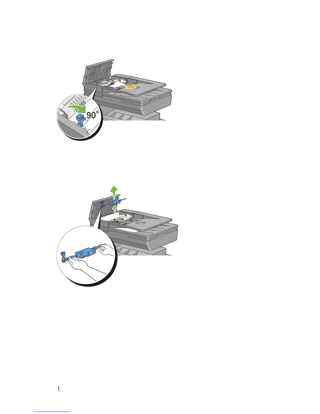 Remove the release roller assembly and remove the document by gently