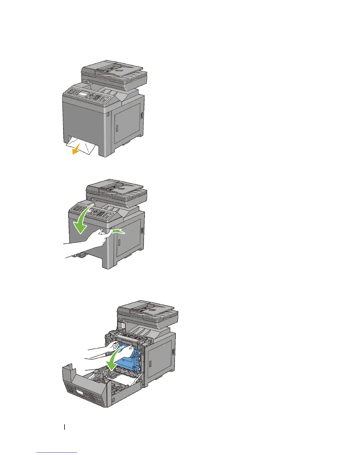Open the belt unit until it stops and remove the jammed paper. Confirm that