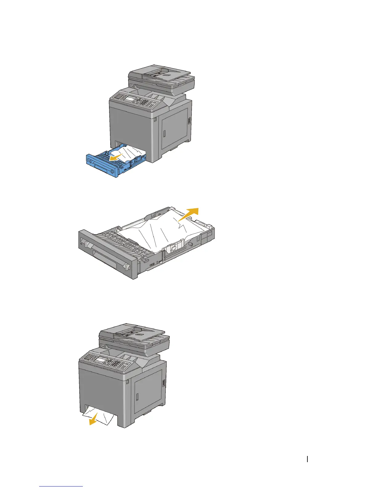 Pull the jammed paper out carefully to avoid tearing it. If you are still unable