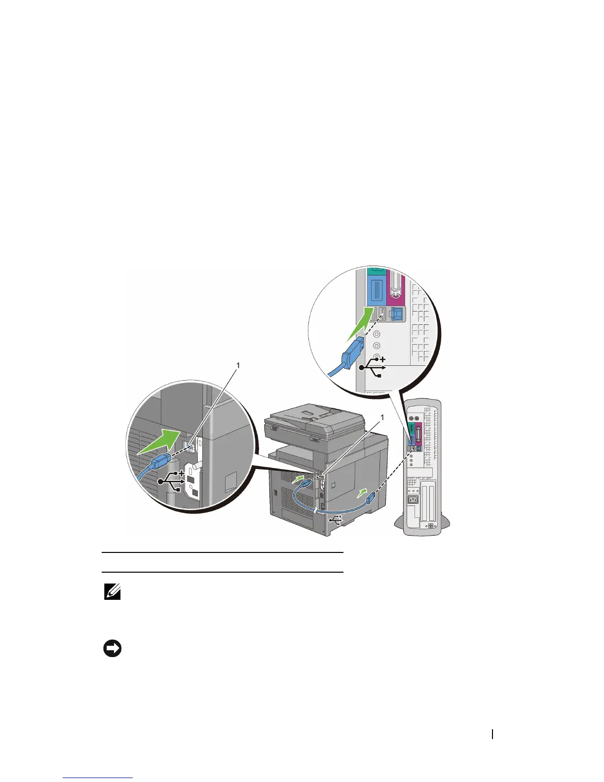 NOTICE: Do not connect the printer USB cable to the USB port available on the