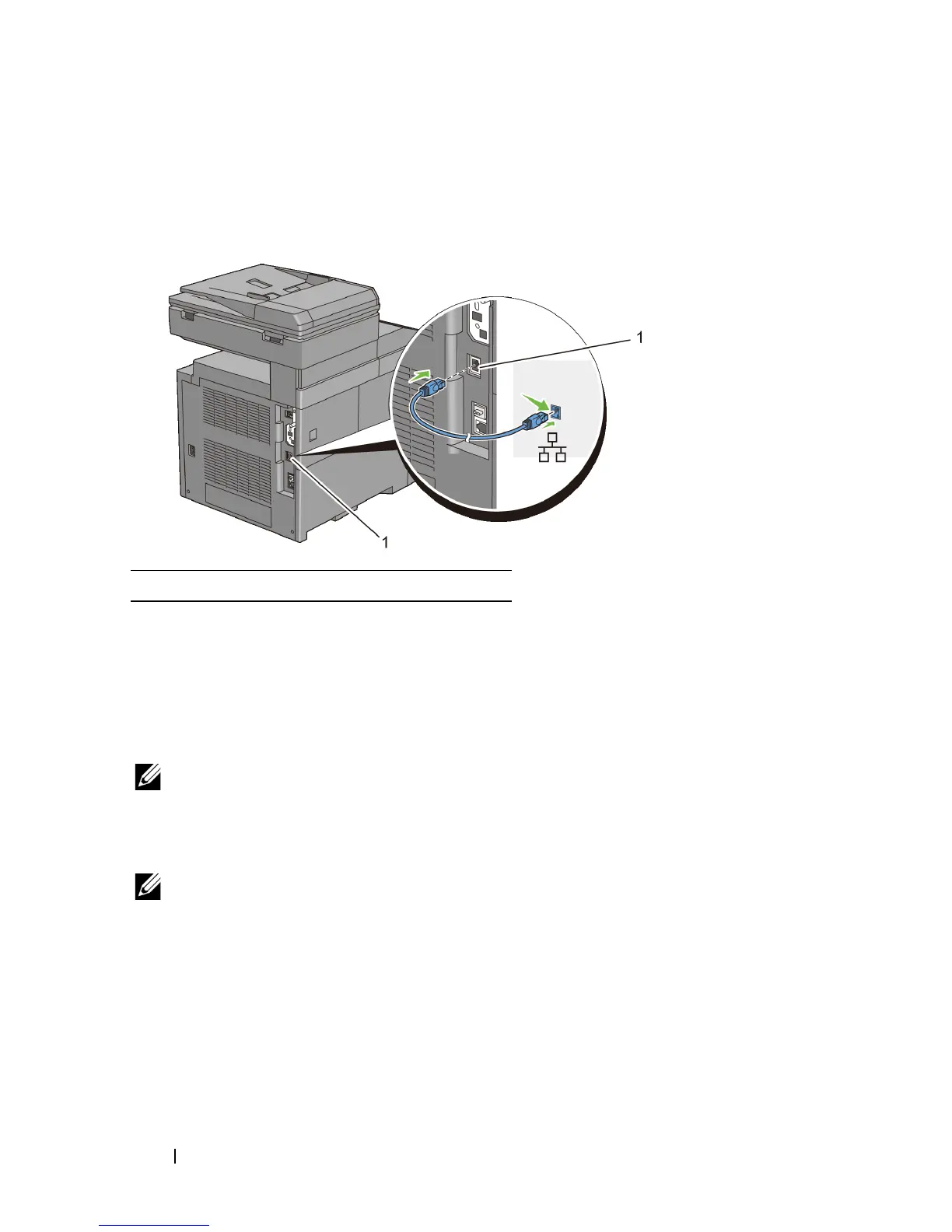 the Ethernet port on the rear of the printer, and the other end to a LAN drop or