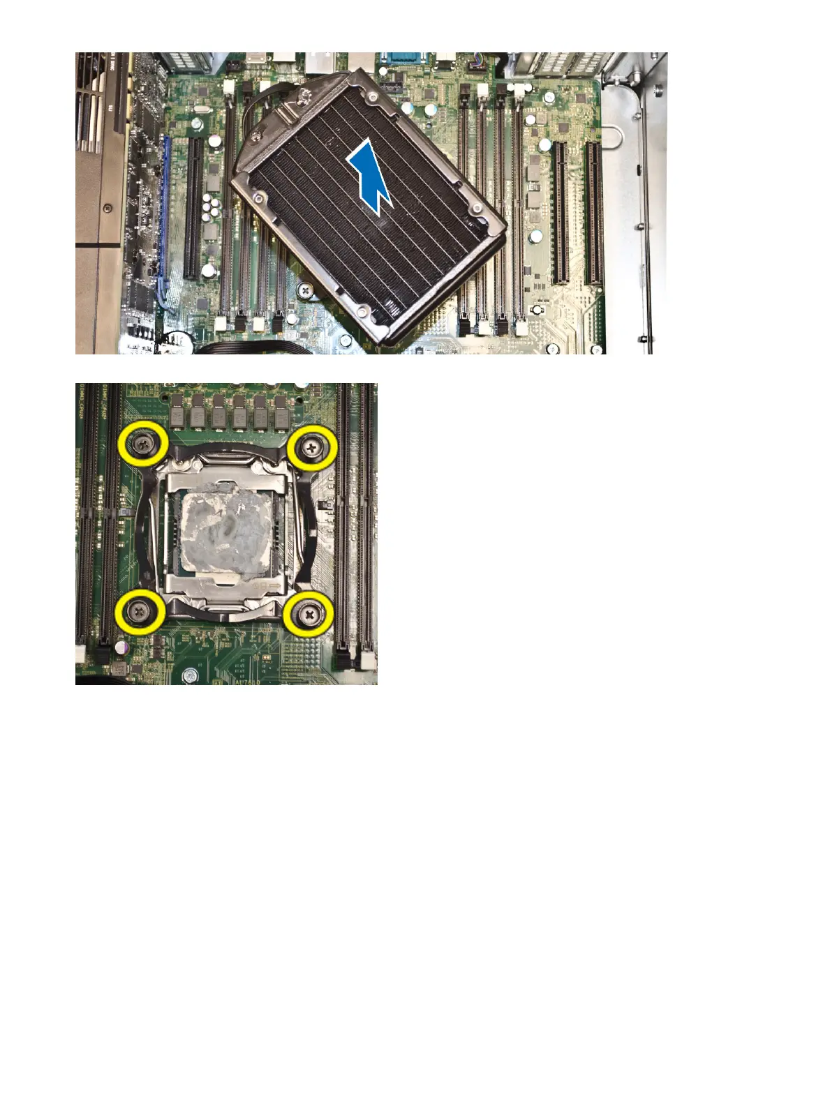 6 Remove the screws that secure the heatsink bracket and remove the bracket away from the system board.