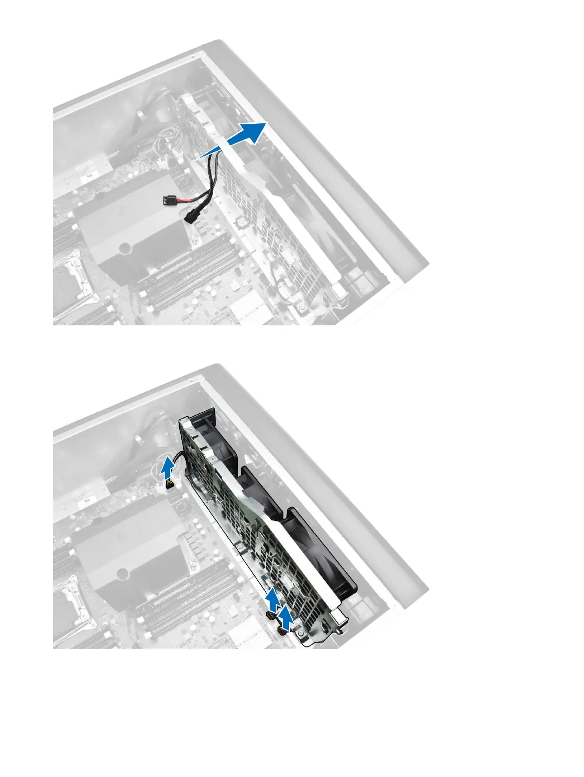 a Disconnect the system-fan and internal speaker cable connectors from the system board [1,2].