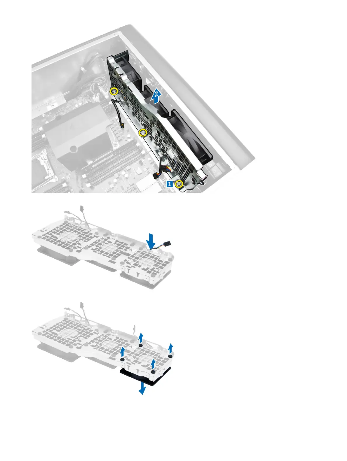 11 Remove the grommets that secure the system fan , lift up the fan and remove it from the fan assembly.