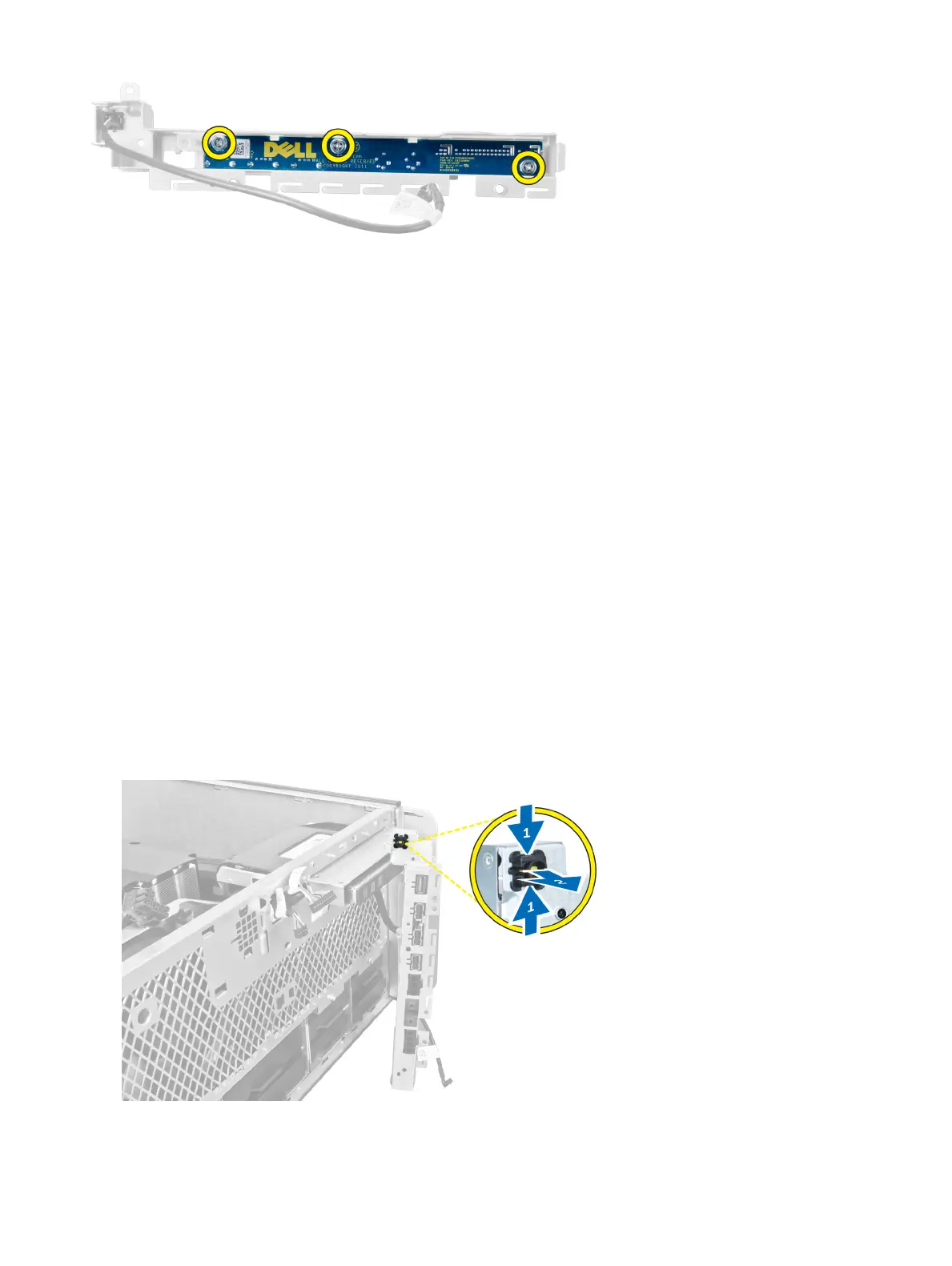 b Press down on the power switch module on the sides to release the power switch from its compartment [1,2].