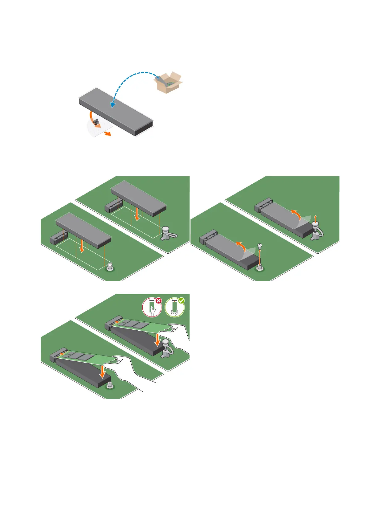 c. Place the M.2 Intel optane memory module into the slot on the thermal pad.