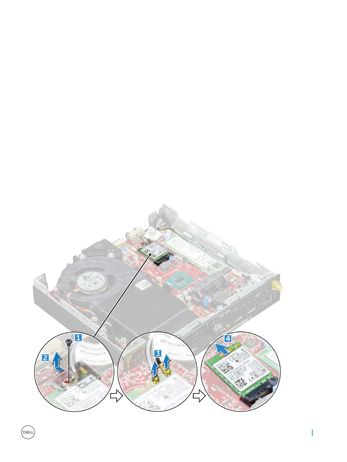 c Disconnect the WLAN cables from the connectors on the WLAN card [3].