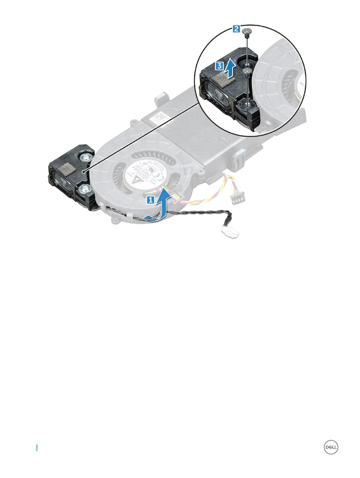 2 Tighten the M2.5X4 screws to secure the speaker to the system fan.