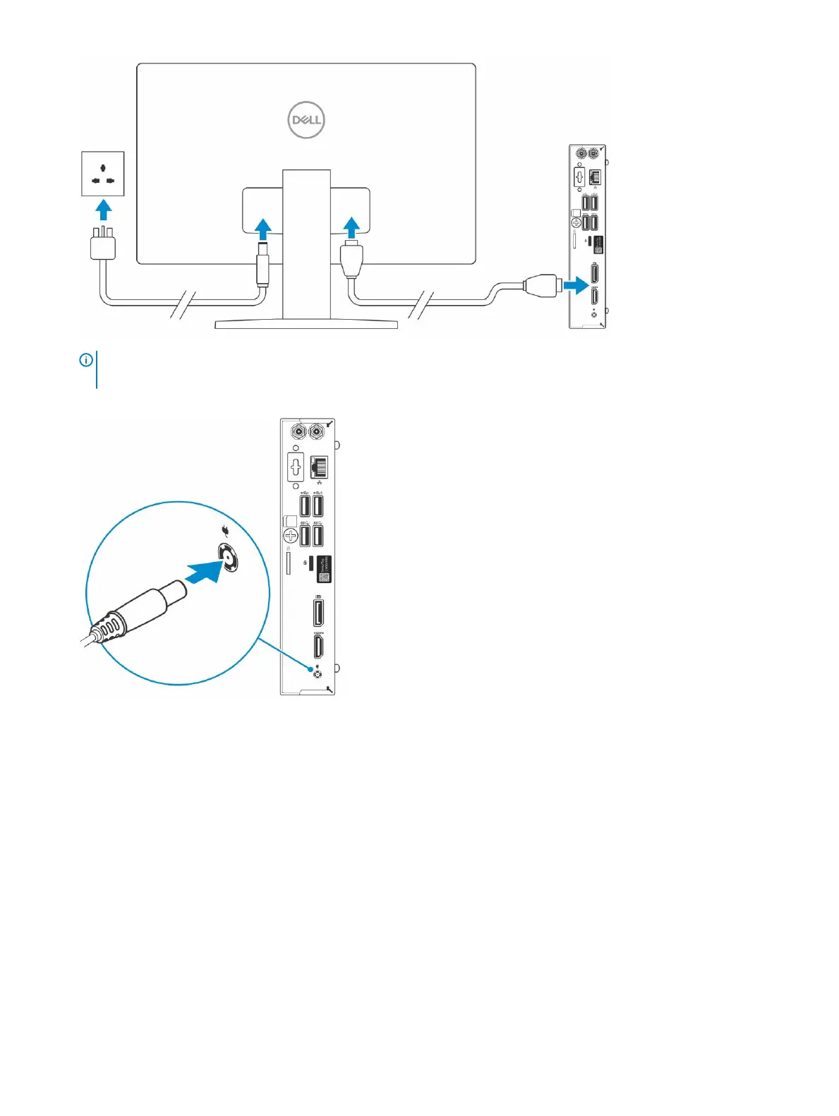 NOTE: If you ordered your computer with a discrete graphics card, the HDMI and the display ports on the back panel of