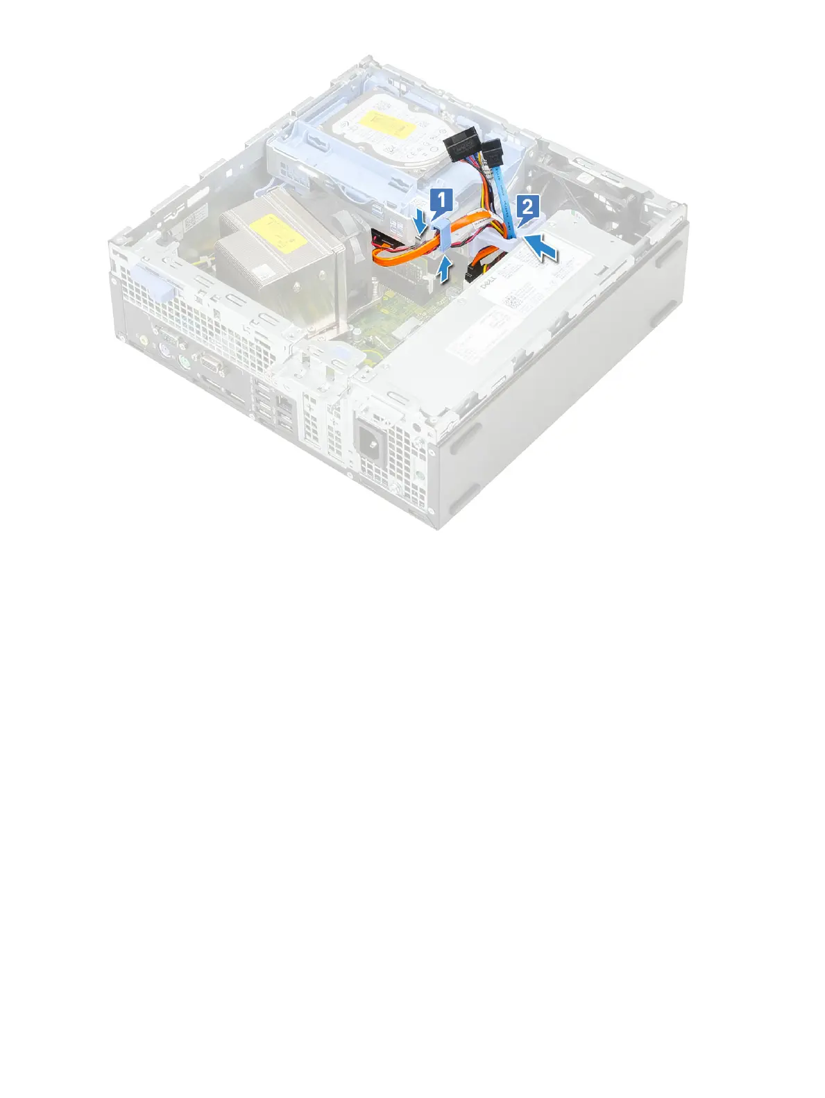 g Connect the hard drive data cable and power cable from the connectors on the hard drive [2, 3].