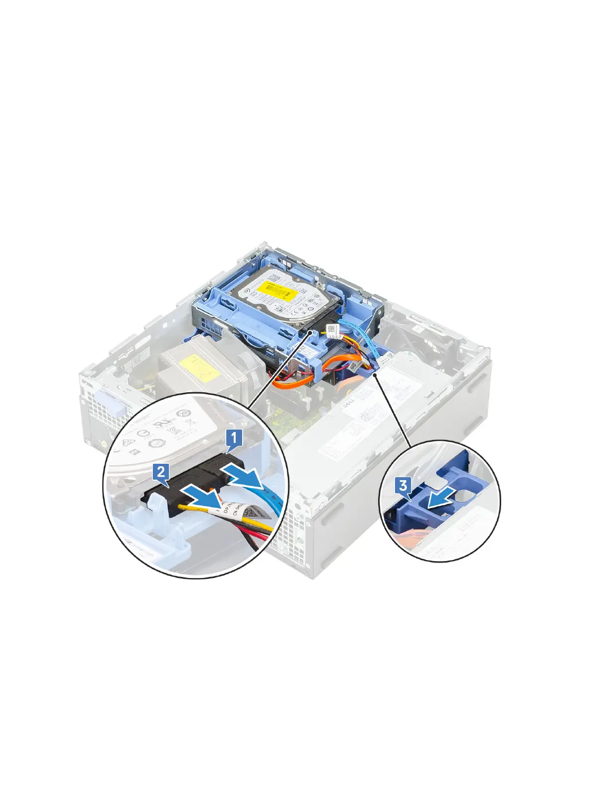 a Disconnect the hard drive data cable and power cable from the connectors on the hard drive [1, 2].
