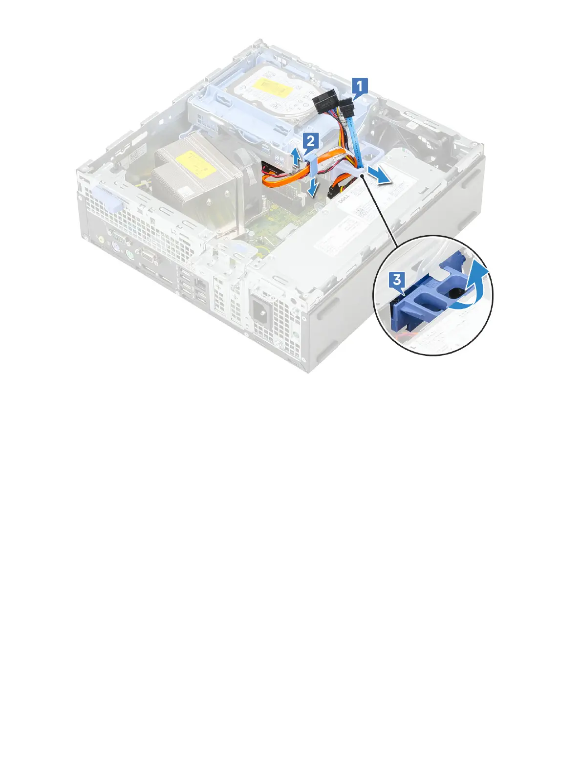 a Disconnect the optical drive data cable and optical drive power cable from the connectors on the optical drive [1, 2].