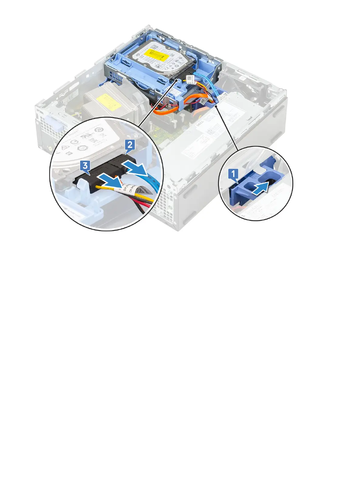 a Disconnect the hard drive data cable and power cable from the connectors on the hard drive [1, 2].