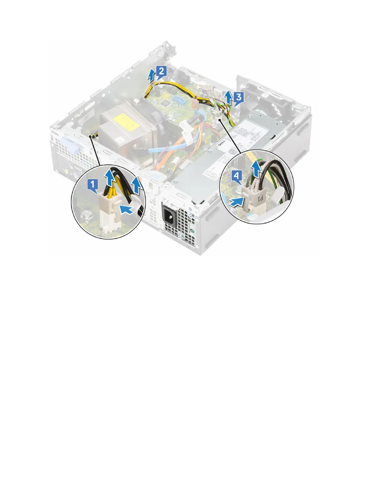 c Disconnect the PSU power cable from the connector on the system board [4].