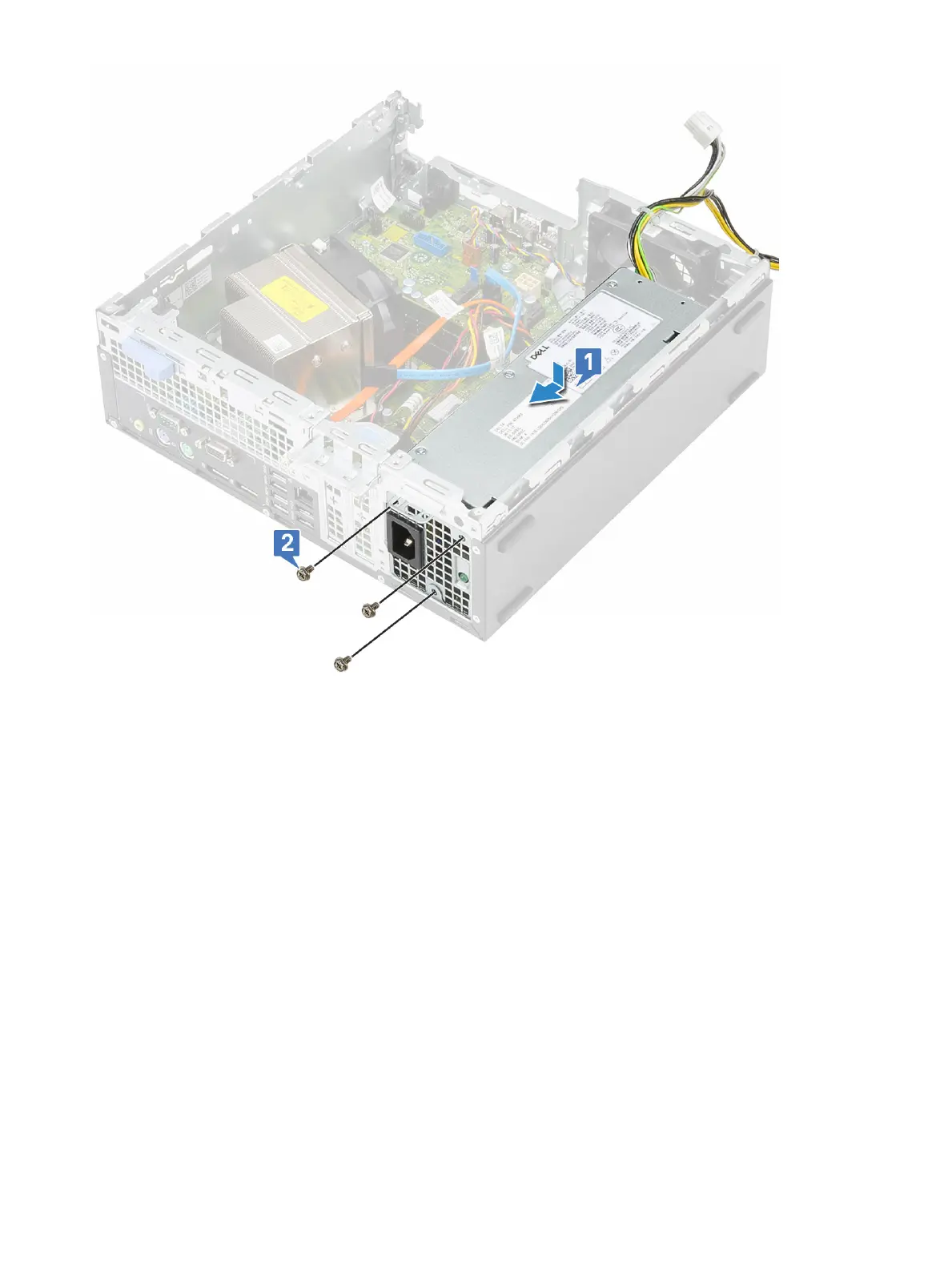 3 Connect the power cable to the connector on the system board [1].
