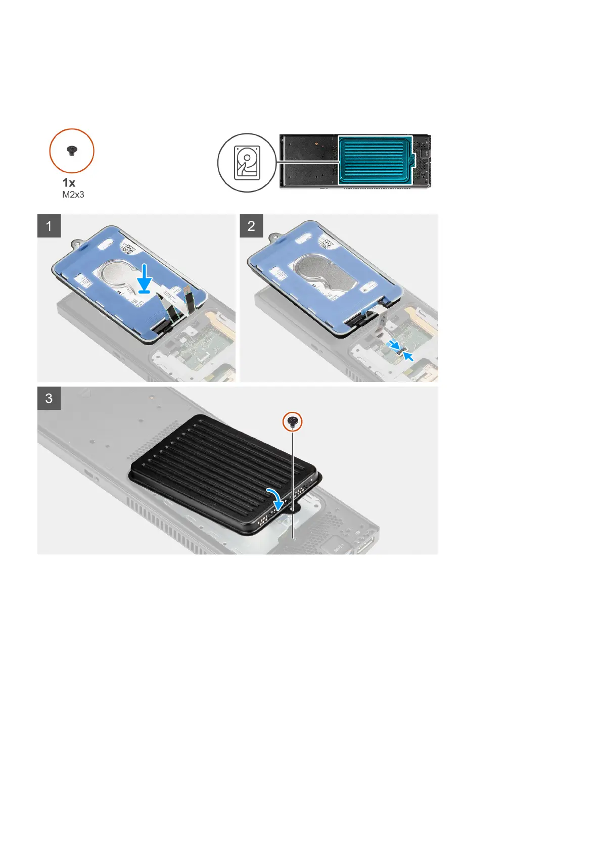 6. Replace the M2x3 screw to secure the hard-drive assembly to the chassis.