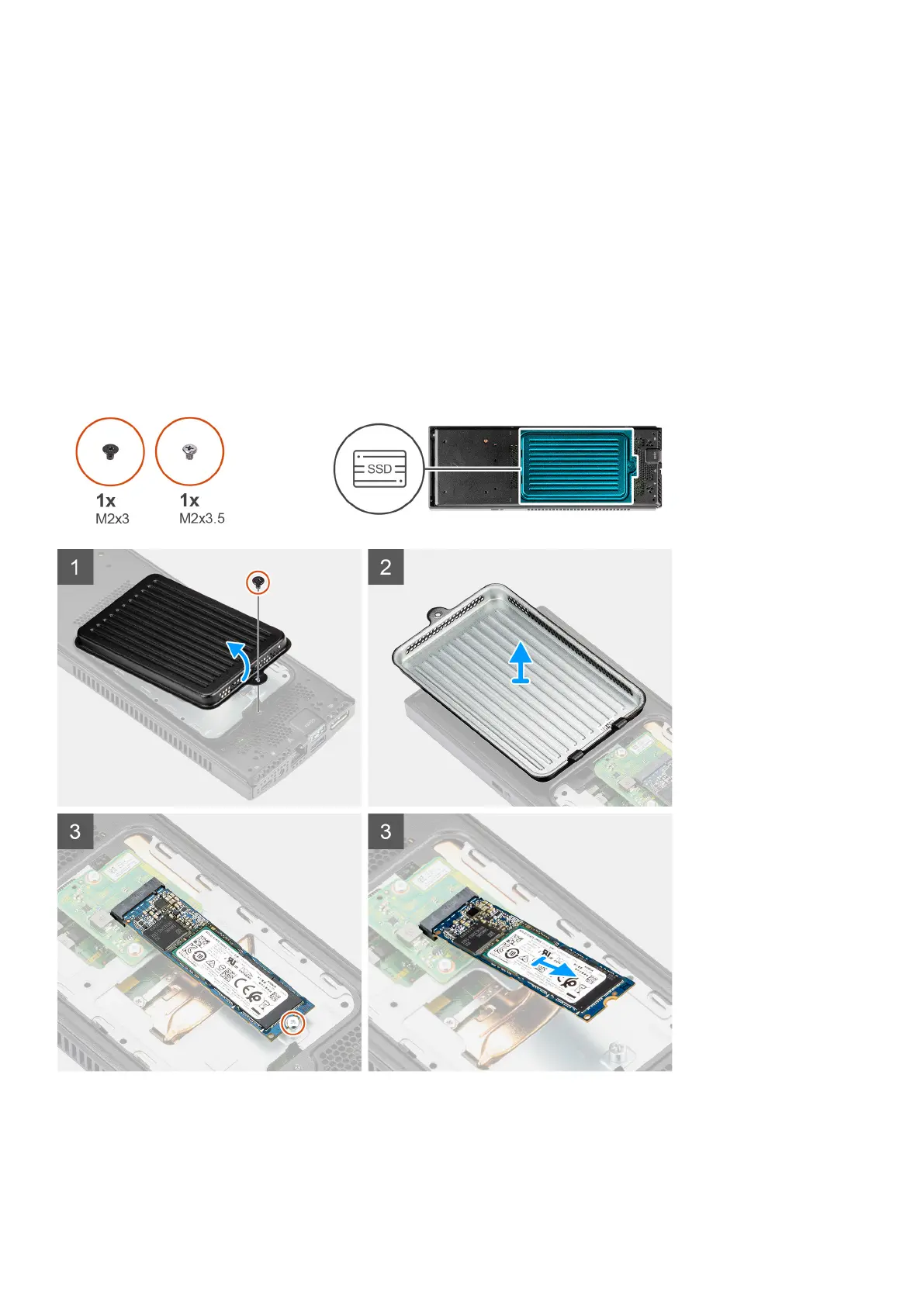 1. Remove the (M2x3) screw that secures the solid-state drive cover to the chassis.