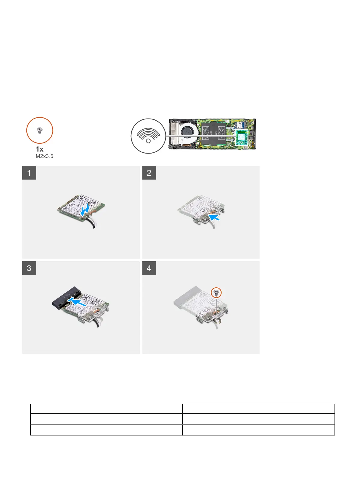 The following table provides the antenna-cable color scheme for the WLAN card of your computer.
