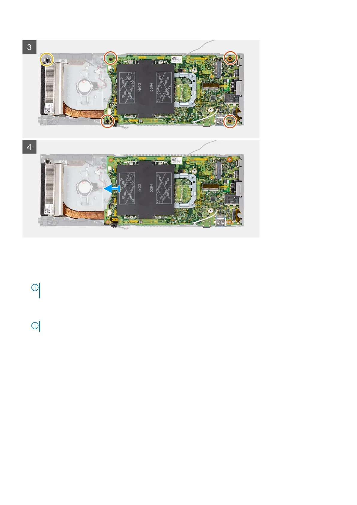 NOTE: The system board is removed along with the heat-sink connected to it.