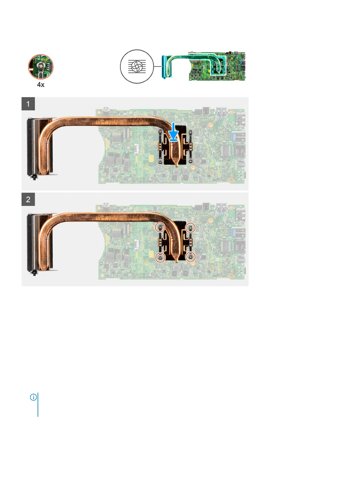 2. In sequential order (as indicated on the heat sink), tighten the four captive screws that secure the heat sink to the system