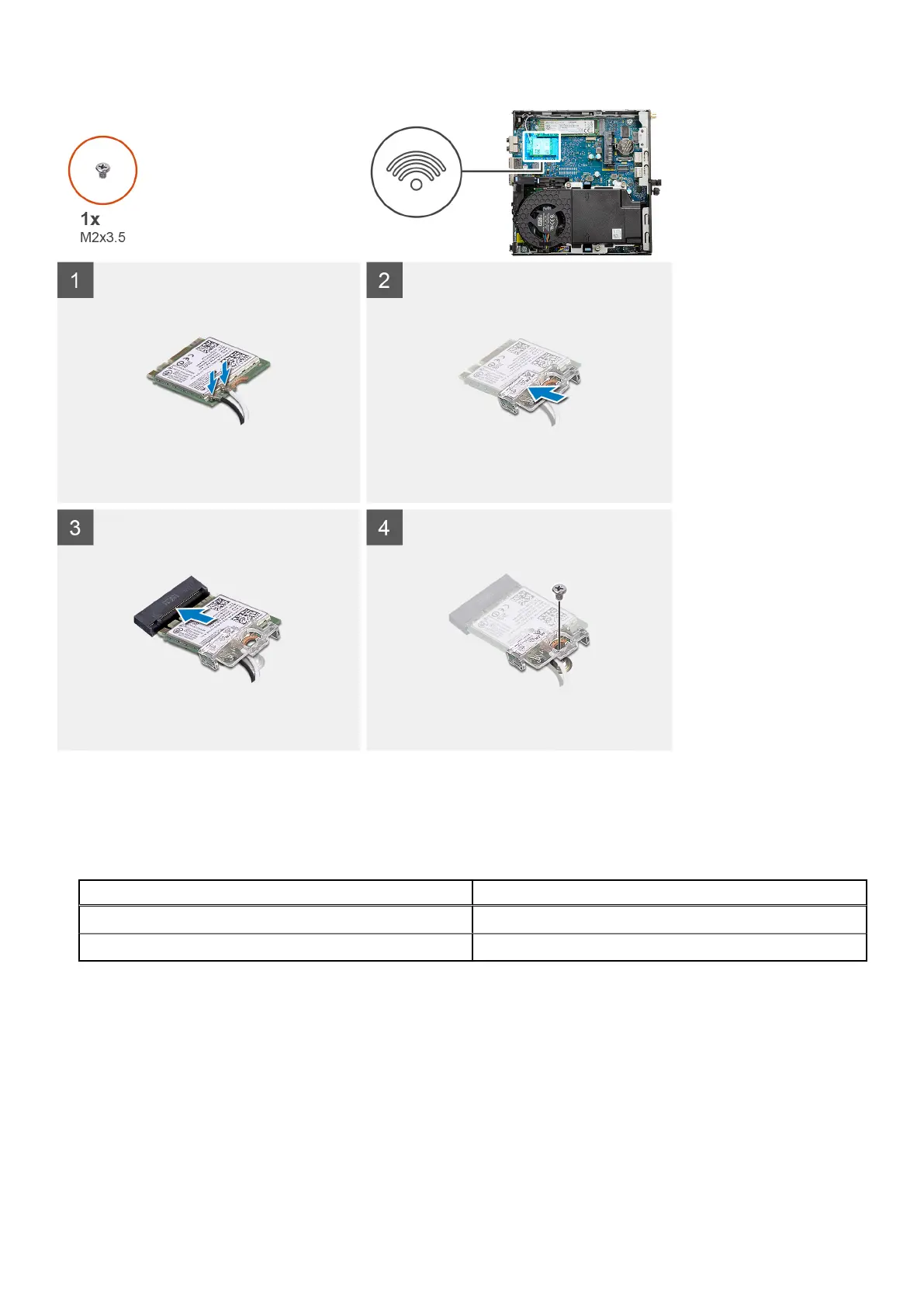 4. Replace the (M2x3.5) screw to secure the WLAN card bracket to the WLAN card.