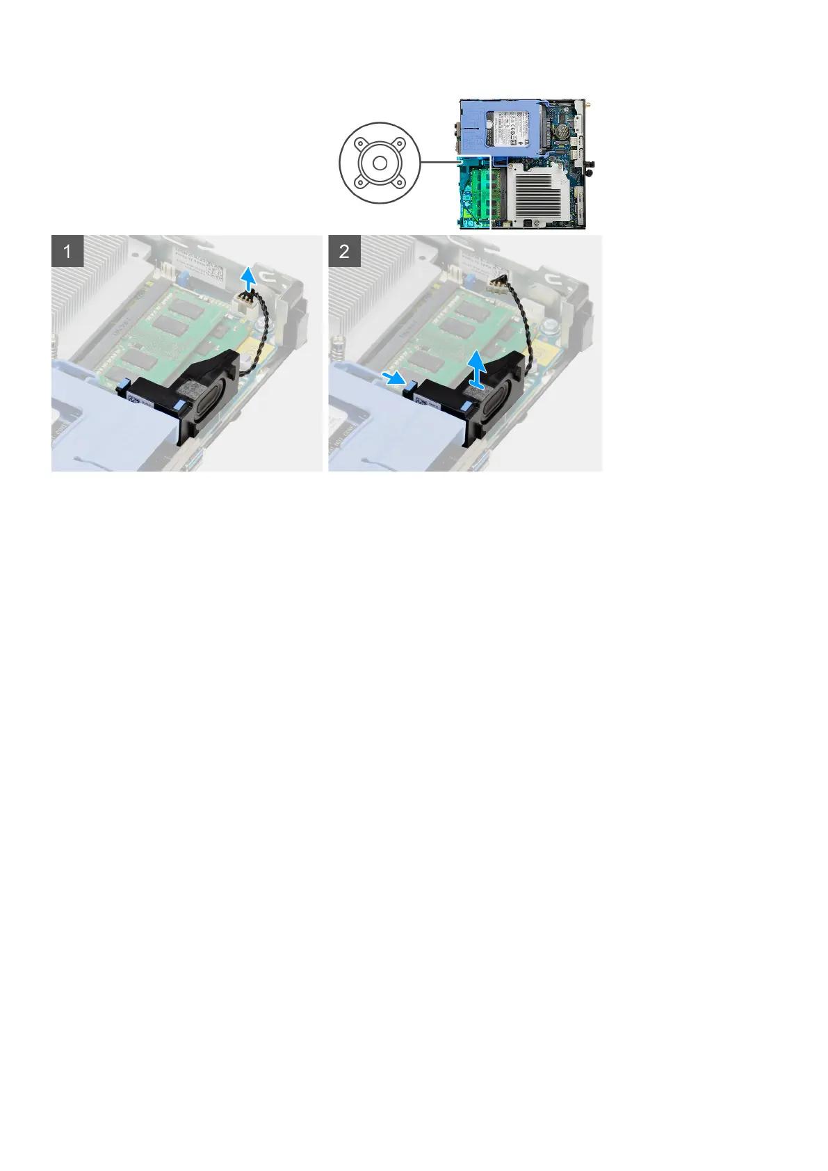 2. Press the release tab and lift the speaker along with the cable from the system board.
