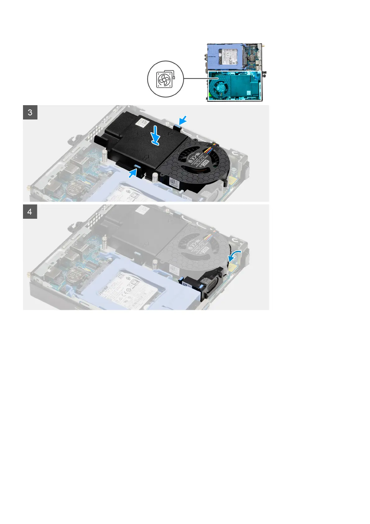 3. Press the release tab on the fan assembly and place it on the system until it clicks into place.
