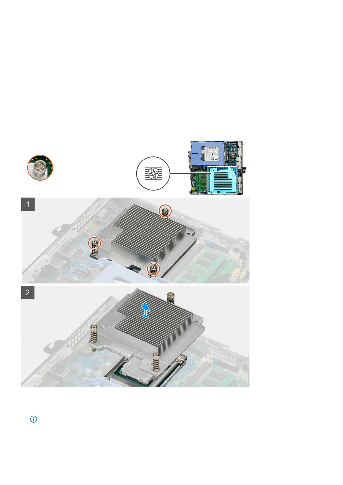 NOTE: Loosen the screw in the sequential order (1,2,3) as printed on the heat sink.